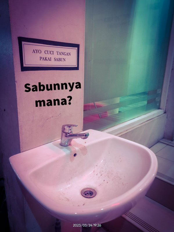 “Standar Operasional Prosedur tidak jelas, dan pastinya abai dengan belum berakhirnya pandemi Covid-19 yang mengharuskan kita untuk sering-sering mencuci tangan,” tutur Pay sapaan akrabnya.Tak hanya sabun cair, pengharum ruangan otomatis ‘Eco Care‘ pun tak kunjung diganti hingga memasuki akhir Maret 2023, padahal seharusnya diganti setiap bulan.